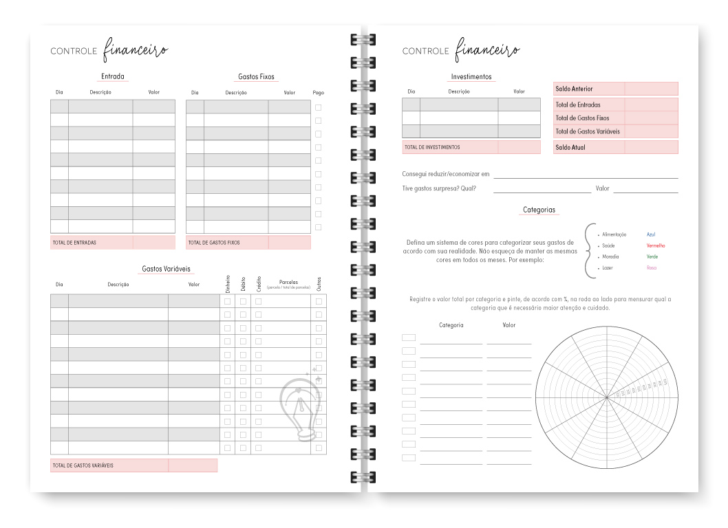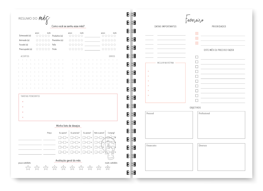 - Visão mensal em duas páginas