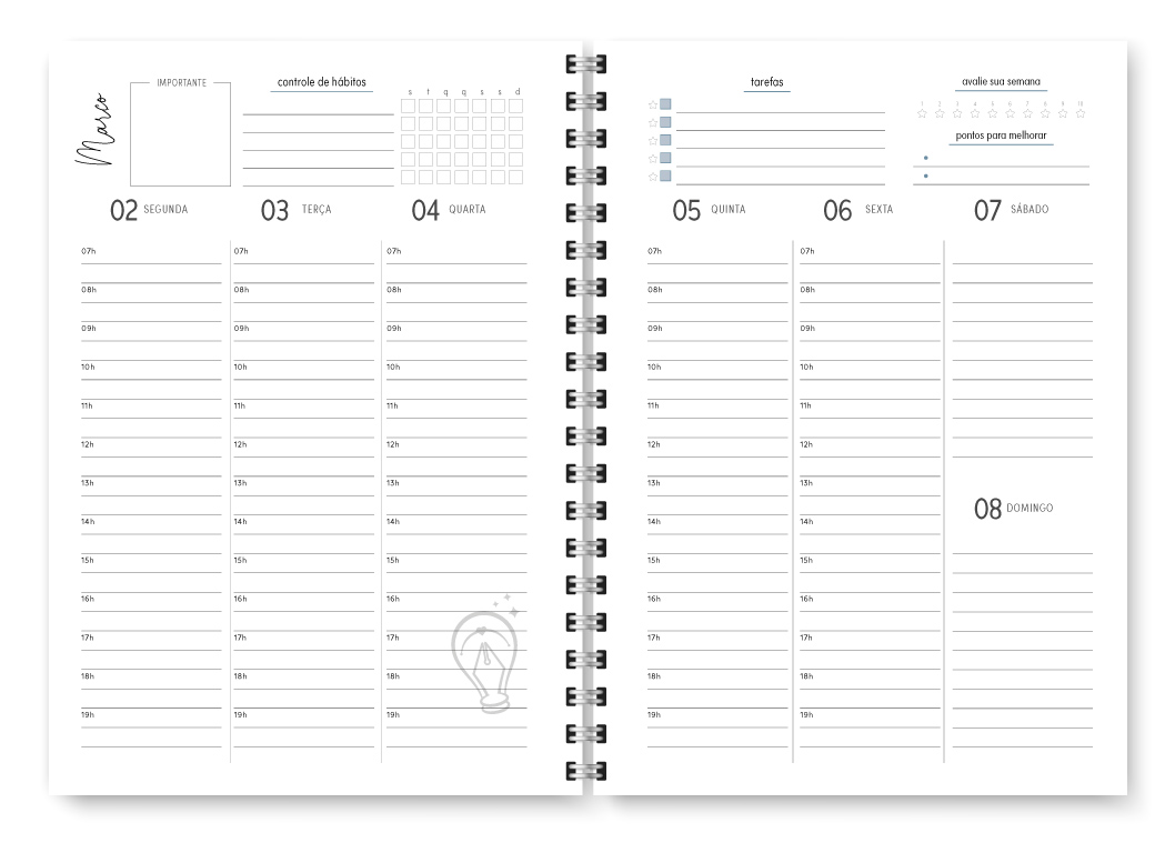 - Visão semanal em duas página / Horizontal