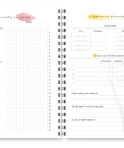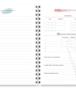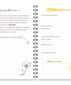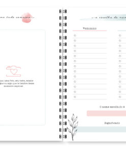 O miolo digital Planner Gestante Aquarela, auxilia as gestantes na organização da rotina, além de possibilitar o registro de informações que merecem ser eternizadas.